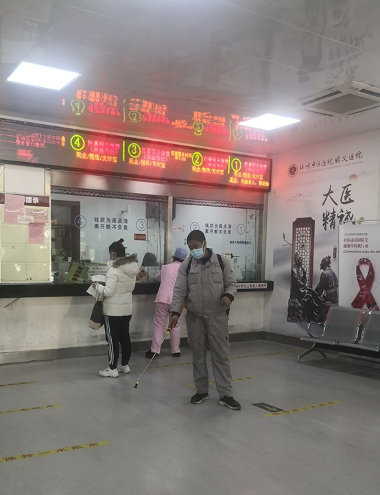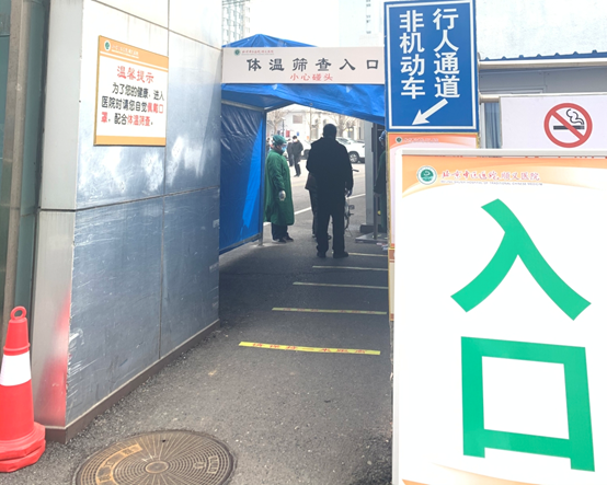 特殊时期,我院实施出入口通道管控措施。出入口处设立体温测量点,对每一位病友及陪同人员进行体温测量、有效身份证件的查验、个人轨迹验证信息或电子通行证检阅,筛查合格后方可进入医院。
