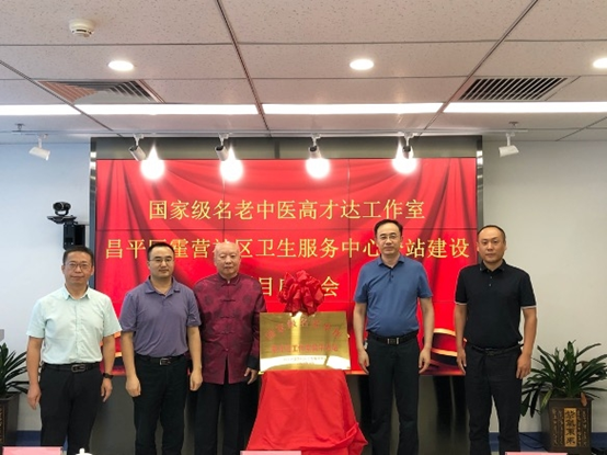 高才达名老中医、顺义区卫生健康委副主任陈豪、昌平区卫生健康委副主任杨杰、我院副院长张勇、昌平区霍营社区卫生服务中心党支部书记强锐共同揭牌。