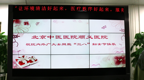 对外,利用医院电子屏,滚动播放祝福语,为来院患者同样送去了浓浓的祝福。
