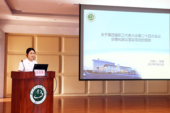 2017年7月31日,我院召开第四届职工代表大会第二十五次会议,全院职工代表参加,班组长以上人员、牛栏山社区卫生服务中心中层干部列席。会议由我院副院长张勇主持,审议通过了医院2017年上半年《政务工作报告》、《财务工作报告》、《工会经费收支情况报告》《涉廉经费审计报告》及《上次职代会合理化建议落实情况报告》。