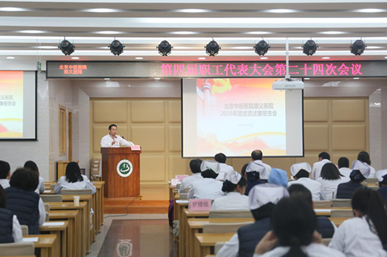 2017年1月17日,我院召开第四届职工代表大会第二十四次会议,院领导班子、职工代表参会,医院班组长以上人员、牛栏山社区卫生服务中心中层干部列席。会上职工代表讨论通过了6项工作报告,听取了6位院领导述责述廉,并进行了领导干部民主评议,充分发挥了职工代表参政议政的职能。