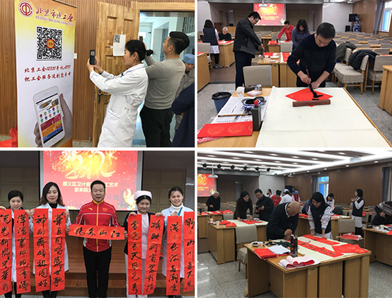 时维腊月,节属小年,为弘扬国粹文化,为职工送上新年第一份祝福,1月20日下午,我院工会特举办第二届“喜迎新春写对联,情暖职工送祝福”活动,邀请顺义区职工艺术家为广大职工现场书写春联,院内职工可通过“北京工会12351APP”现场扫码,免费领取春联或福字一副,共送出春联200余幅、福字近300张。