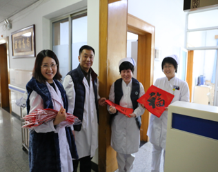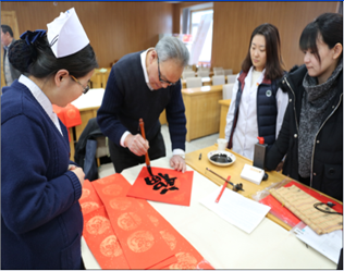 时维腊月,节属小年,为弘扬国粹文化,为职工送上新年第一份祝福,2018年2月8日下午,我院工会响应上级工会“传承传统文化 春节送祝福”活动号召,邀请顺义区职工艺术家来院为职工现场书写春联、彩绘葫芦及剪纸,职工可通过“北京工会12351APP”现场扫码参与活动,活动现场洋溢着节日的气氛,除职工可到现场领取外,王继东副院长及工会人员将写好的春联及福字分别送至各个病区及医技科室,为坚守岗位的一线职工送去节日的祝福和问候。