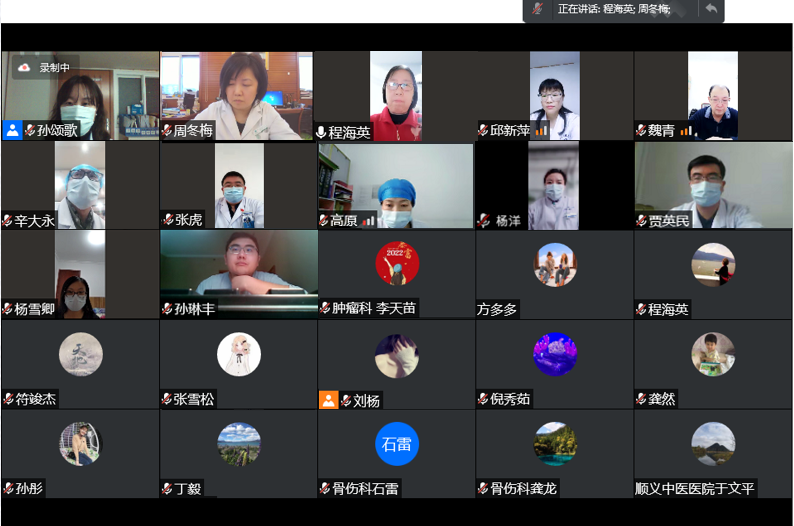 为了加快医院名医传承室站的发展建设,提升室站内涵,3月9日和3月11日,教育处分两批对21个名医传承工作室站开展了2021年年终考核会,考核会采取线上形式进行,全国名老中医药专家程海英教授,北京中医医院继续教育办公室主任赵因,我院党委书记魏青、总会计师于文平、科研处处长邱新萍及教育处处长杨洋作为考核专家,对名医传承室站的建设情况进行考核。