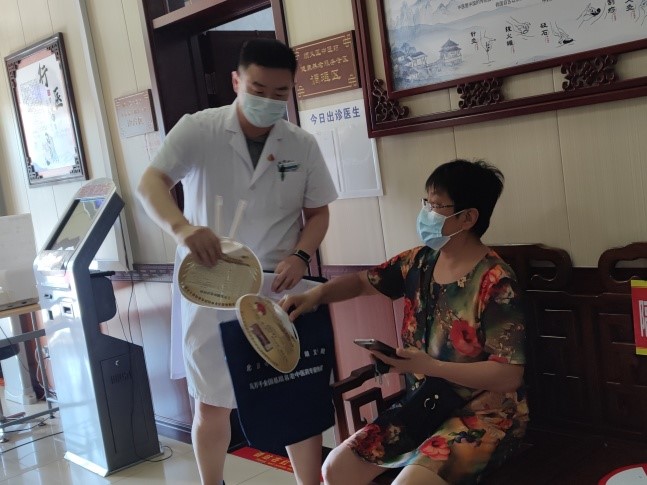 会后,行政后勤第一联合党支部党员在门诊进行义诊活动,对前来就诊的居民进行了健康咨询,发放宣传资料等服务,对患者提出的常见病、多发病等健康问题进行答疑解惑,并耐心细致地讲解相关注意事项、合理用药等常识,给予专业的健康指导。