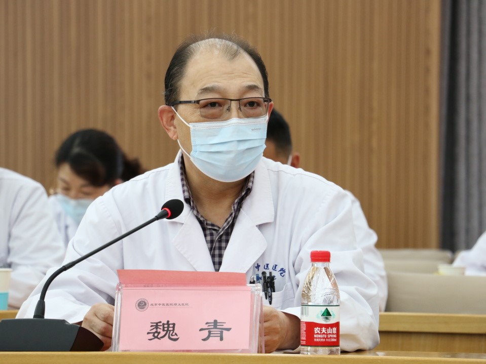 北京中医药大学各领导相继发言,副校长翟双庆表示医院与大学应该达成紧密关系,大学需要在医院进行理论与临床的结合,学生需要在医院进行动手、实践,同时,医院也需要大学,需要把教学作为抓手,带动医教研全面发展。北京中医药大学对教学基地在管理人员方面、教学管理制度方面、师资方面、组织机构建设方面、授课、查房、小讲课等教学活动方面均有一定要求,通过此次调研、座谈,希望顺义中医院能够按照大学要求进一步开展教学基地建设。