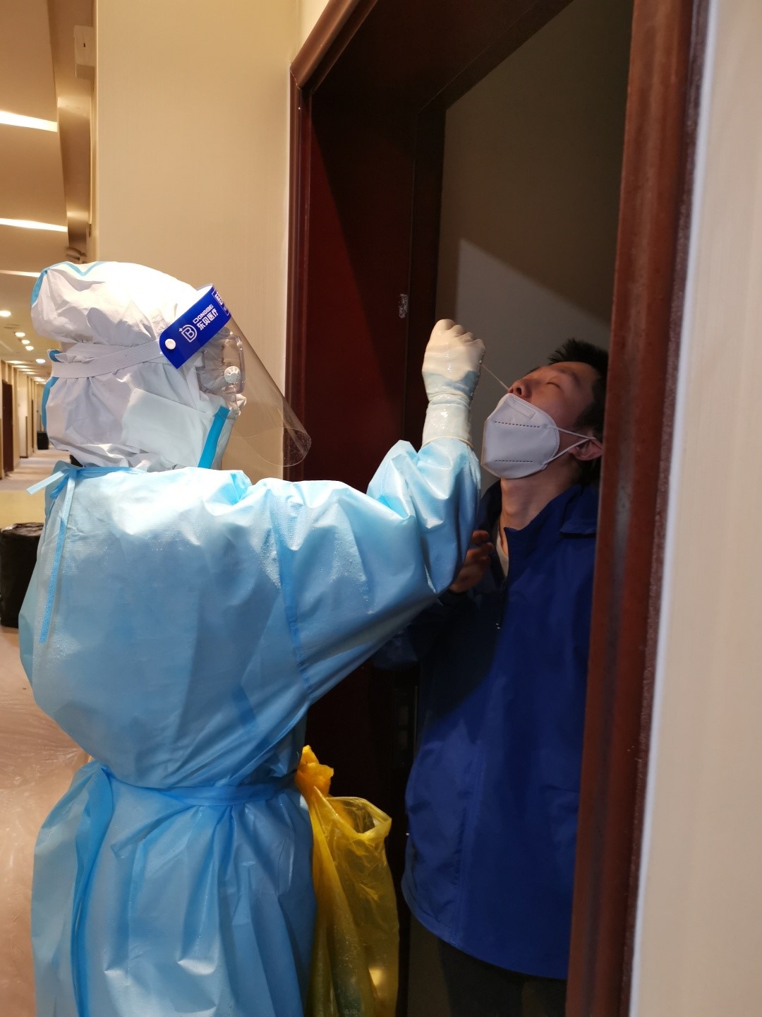 邓越赶赴隔离酒店时,王宇航还奋战在核酸采集一线,密接酒店的工作让时间更显紧迫,环境消杀,鼻拭子、环境样本采集,体温健康监测,还要做好每名密接者的解释安抚工作……有时还要进行补采,18:00全副武装,直至22:00才采样完毕,第2天又是相同的工作,在工作中,邓越还要忍受过敏导致的鼻腔堵塞等一系列症状,充分展现了共产党员的担当。