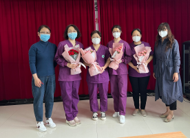 “小朋友,你真勇敢”“老人家您慢点,别着急”李春辉耐心细致,和蔼可亲的声音温暖着每一位社区居民。昨日正好是512国际护士节,金宝花园社区葛主任在李春辉从点位下来后,手捧鲜花迎接着她并送上了社区全体干部的祝福 ,合影时李春辉不好意思的说头发太乱、衣服也都是汗水的痕迹,葛主任说:今天的印记是最美的。李春辉作为科里唯一的护士,也是一名共产党员,平时在科里就是干活最利索的。到了采集点依旧发挥了吃苦耐劳的工作作风,无论是扬沙的大风天还是闷热的下午她都不曾推辞,主动承担最辛苦的工作。其实她老公因工伤在家休养,上面还有八十多岁的婆婆需要照顾…