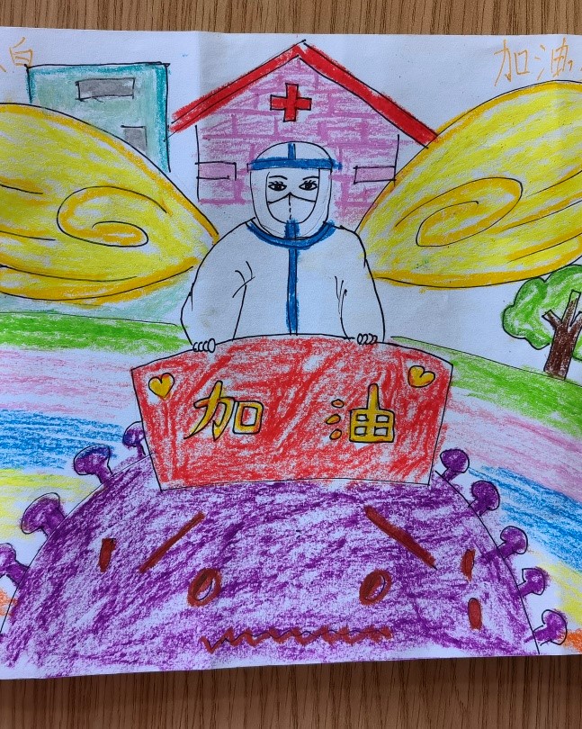 阿姨辛苦啦!一个甜美的声音如一股清泉响彻在张广宏的耳畔,一个帅气的小男孩儿手捧着一幅手绘的大白抗疫图画,递到了张广宏的面前,看着那真挚的眼神,张广宏不禁想起了今天临出门时儿子不舍的目光,不禁潸然泪下。