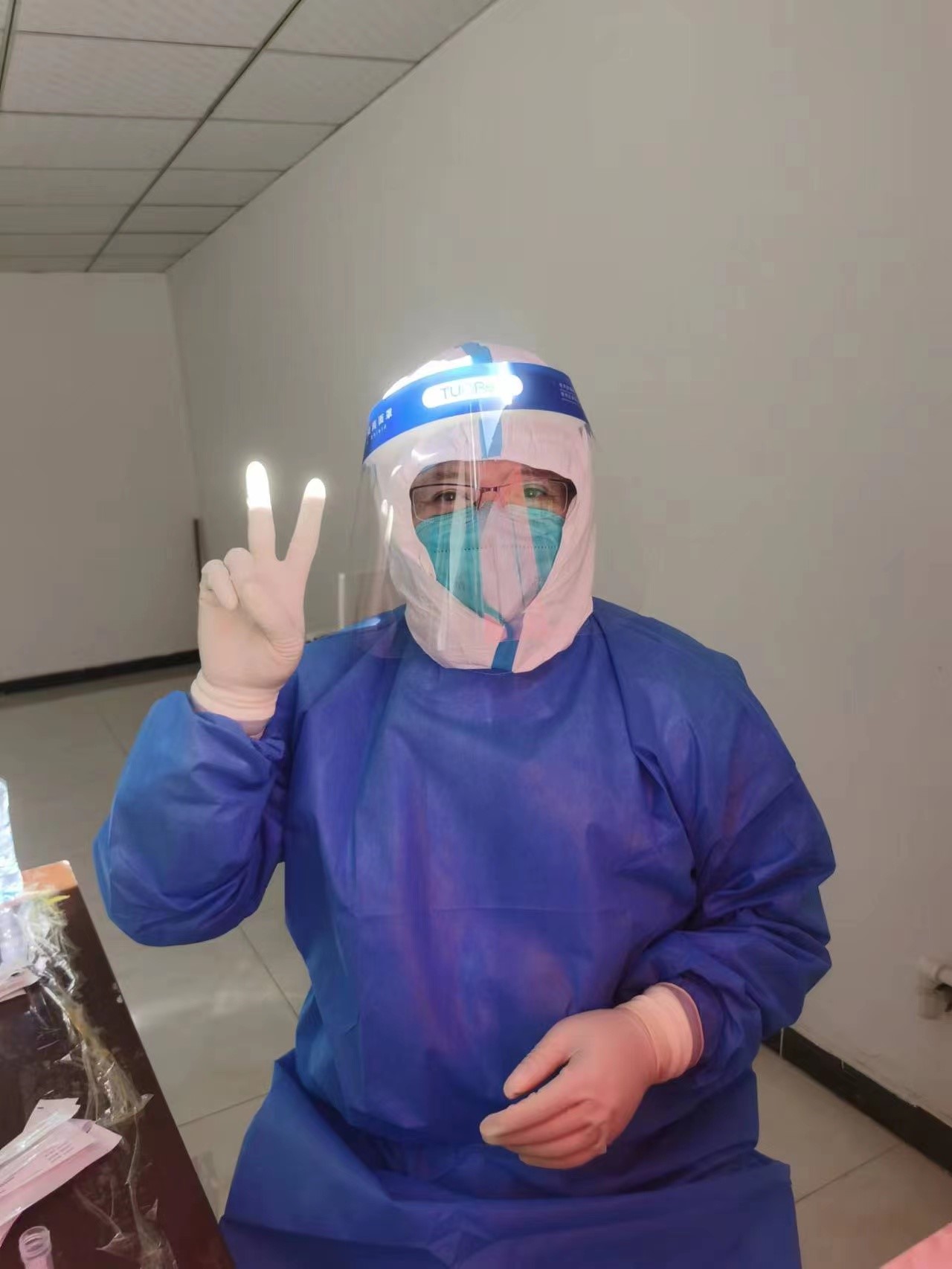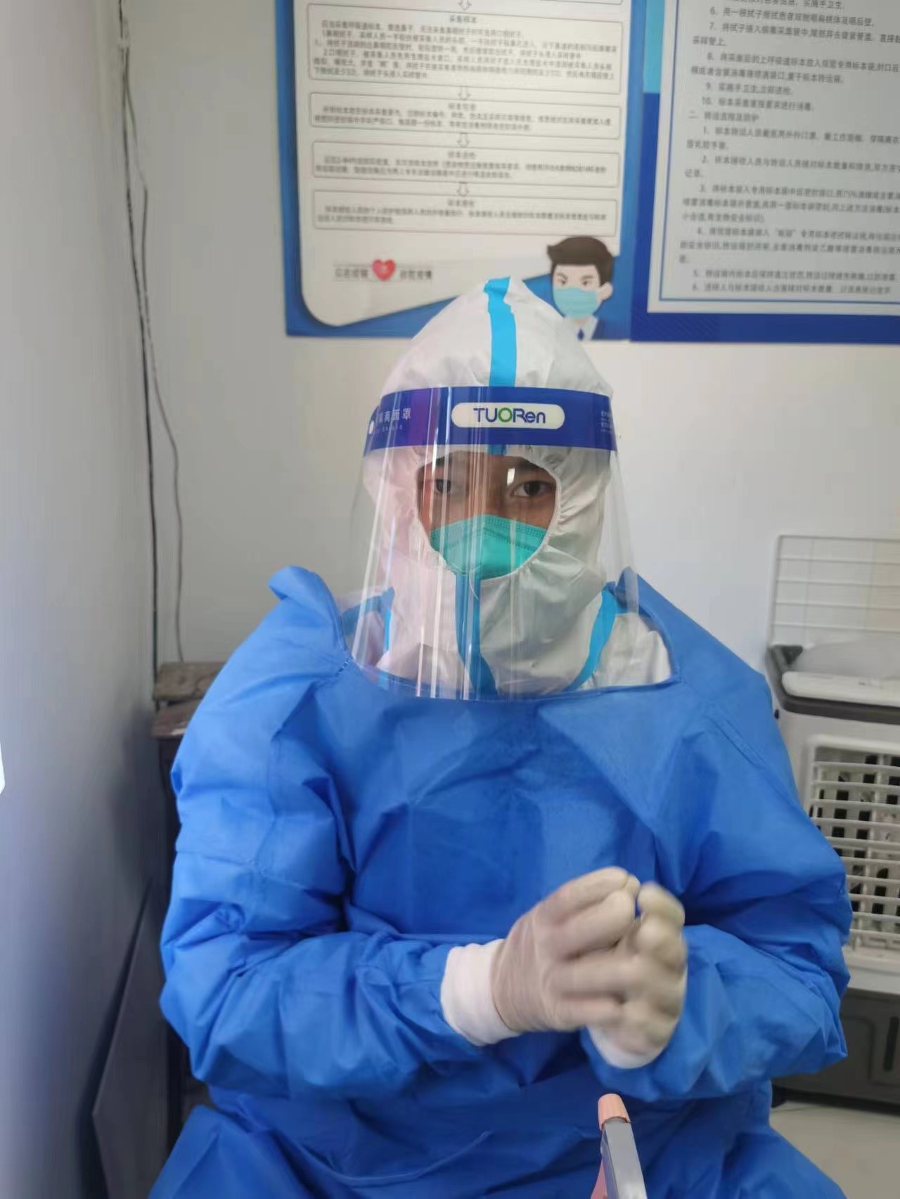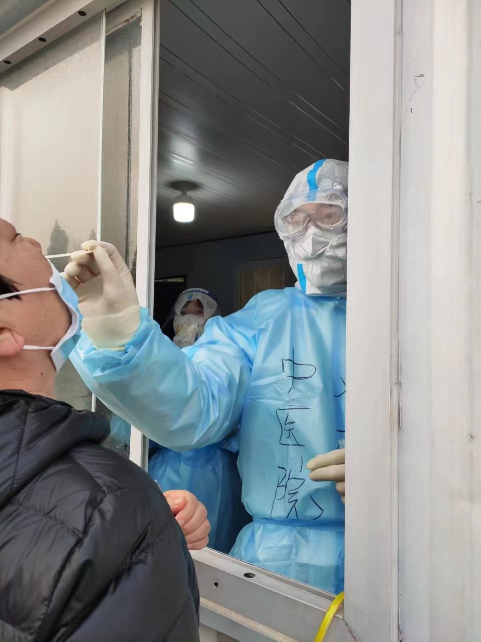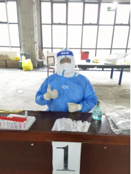 刘红艳作为推拿科主任,每天都是早来晚走,不仅要统筹安排门诊工作,今年已51岁的她还穿上厚厚的防护服,加入到采集的队伍中去。在她心里作为一名党员,就要冲锋在前,哪怕再苦再累也要坚持到底。