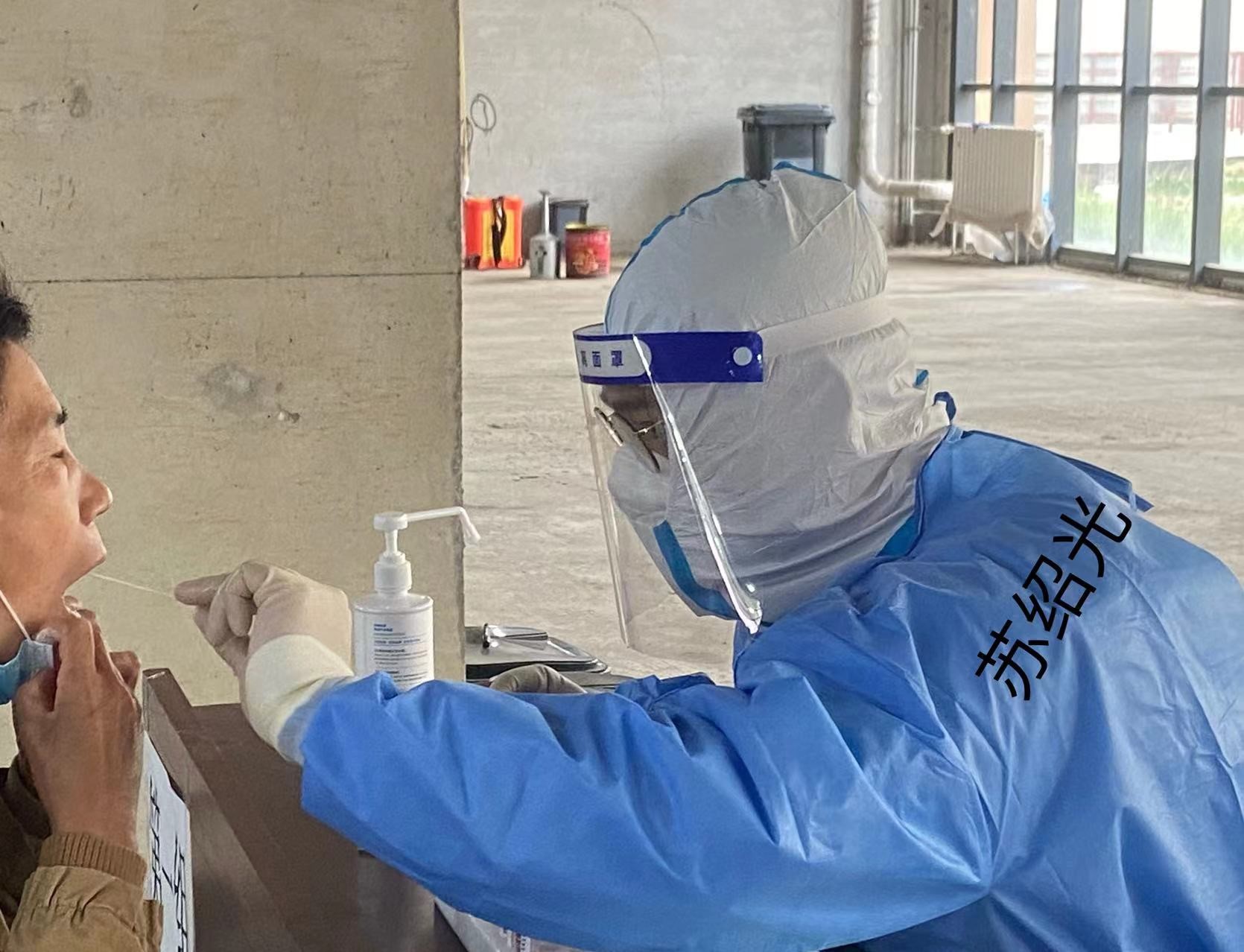 苏绍光,在接到了采集任务后,他立刻跟正在保胎中的妻子商量想要为抗疫出一份力量,在得到了妻子的支持后,他又联系了岳母,请她帮忙照顾一下妻子,就一头扎到了核酸采集阵容中,连续多次的核酸采集任务,每次都主动承担最累的入户采集工作,每当问他要不要换一个人去时,他总说:“看我这么壮,交给我吧,没问题”!