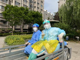 “小朋友,你真勇敢”“老人家您慢点,别着急”李春辉耐心细致,和蔼可亲的声音温暖着每一位社区居民。昨日正好是512国际护士节,金宝花园社区葛主任在李春辉从点位下来后,手捧鲜花迎接着她并送上了社区全体干部的祝福 ,合影时李春辉不好意思的说头发太乱、衣服也都是汗水的痕迹,葛主任说:今天的印记是最美的。李春辉作为科里唯一的护士,也是一名共产党员,平时在科里就是干活最利索的。到了采集点依旧发挥了吃苦耐劳的工作作风,无论是扬沙的大风天还是闷热的下午她都不曾推辞,主动承担最辛苦的工作。其实她老公因工伤在家休养,上面还有八十多岁的婆婆需要照顾…