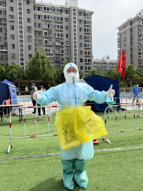 李红云是个健身达人,不善言辞但却是一个敢于担当,乐于奉献的女汉子,从疫情刚开始时的核酸采集,之后的疫苗保障,每一个抗疫的战场都会有她的身影。在点位采集时也都尽可能的多干一会,入户采集她主动选择需步行前往的住户,三十五六度的高温下,防护服里像蒸笼一样,二十几户采集完她整个人被汗水浸透,第二天依然原路披甲上阵。