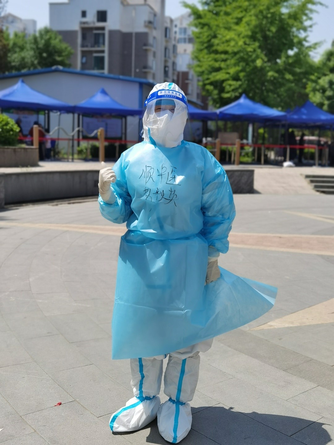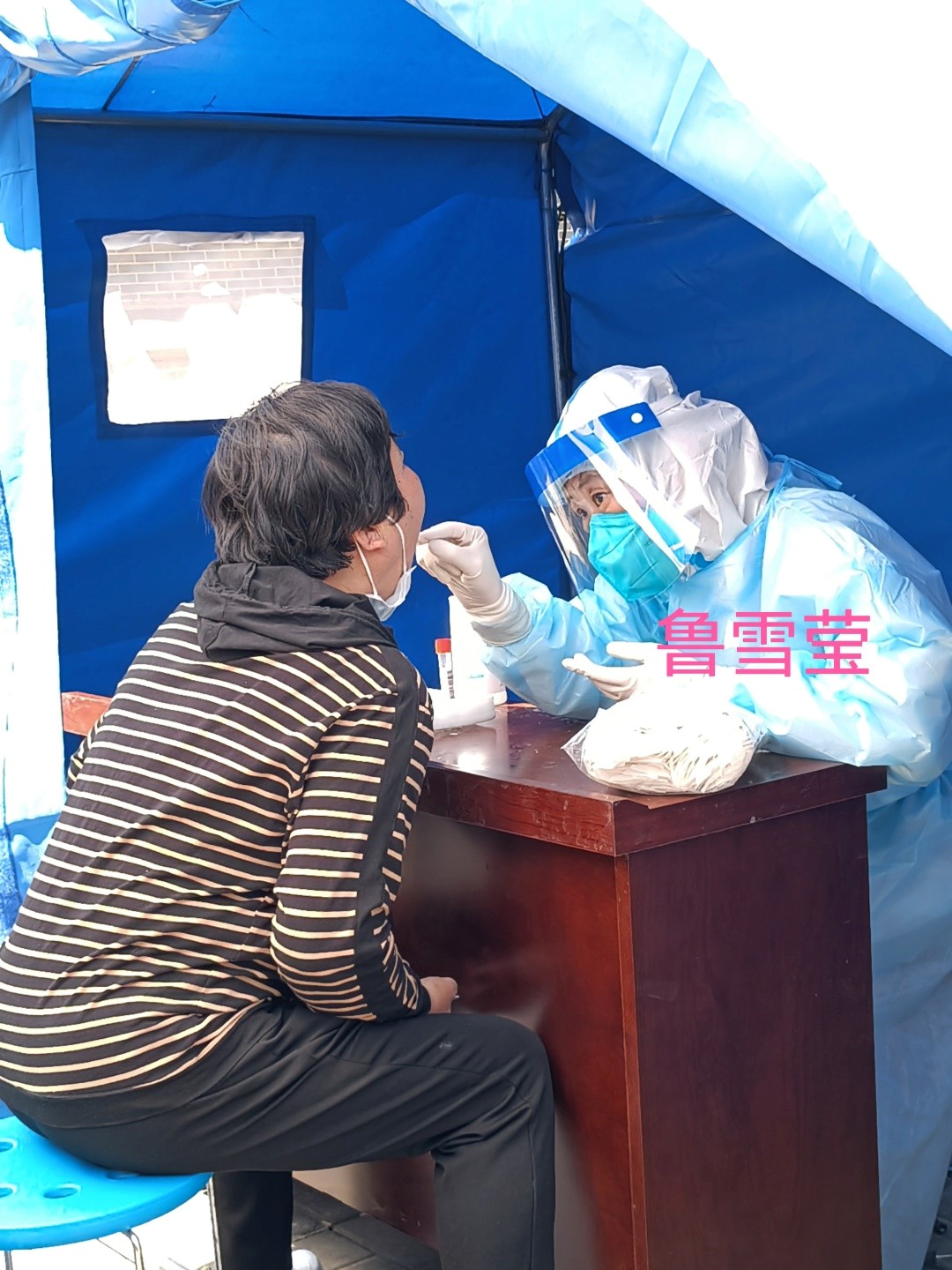 体检中心职工年龄普遍偏大,平均年龄为49岁,其中王海青医生、彭秋英医生和侯红霞医生都是即将退休,享受天伦之乐的同志,疫情当前,他们积极响应号召,白衣执甲,投身到核酸采集工作中,他们不怕苦、不怕累,在这场没有硝烟的战争中,用实际行动诠释了白衣战士的天职和使命。