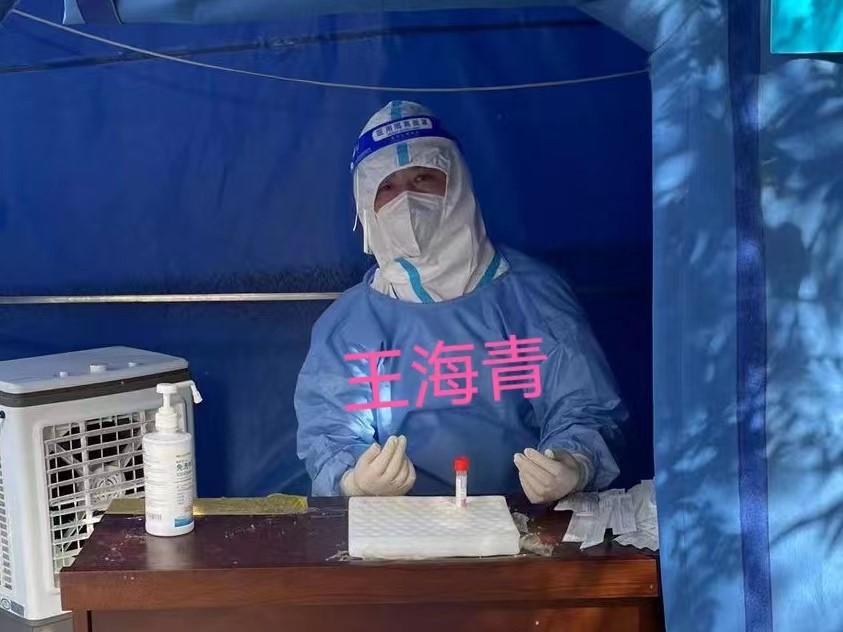 体检中心的12名职工自清明节后已经连续3个周末加班,临近五一假期,却出现了疫情,医院抽调大批医务人员参与核酸采集工作,却依然人员缺口较大,体检中心主动请缨,科内留下两人负责日常工作,其他人全部前去支援核酸采集工作。