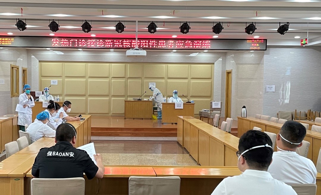 为加强新冠肺炎的防疫战斗力,确保疫情发生后有效、有序的开展实战救治及防控工作,增强院内对新型冠状肺炎阳性患者的处置能力,结合北京新型冠状病毒肺炎疫情防控工作领导小组医疗救治组和防院感组《关于调整新冠病毒感染者转运工作流程的通知》、顺义新型冠状病毒肺炎疫情防控工作领导小组医疗保障组《关于规范封控区管控区隔离人员医疗服务保障工作的通知》文件要求及医院相关接诊流程,我院发热门诊于6月10日开展接诊新冠核酸阳性患者处理应急演练,张勇副院长,医务处、院感办、疾控处、护理部、门诊部、检验科等职能科室及相关工作人员参加了本次演练。
