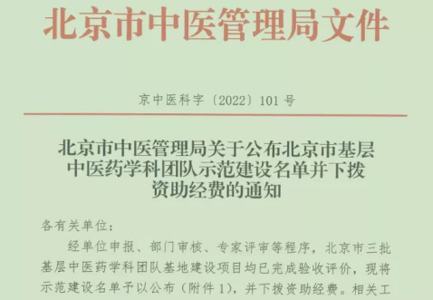 2022年9月27日北京市中医管理局官方账号公布北京市基层中医药学科团队示范建设名单,我院肾病科喜获北京市基层中医药学科团队示范建设基地。