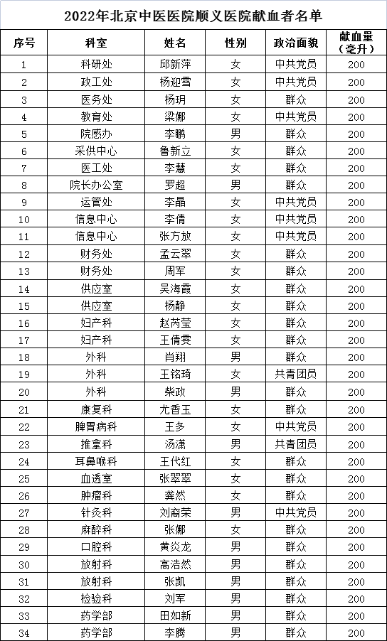 此次无偿献血活动,我院党团员和群众共计34名职工捐献血液6800毫升,用实际行动诠释了关爱社会和无私奉献的精神,展现了医务工作人员良好的精神风貌,营造了传递爱心、奉献社会的文明城区氛围,促进了无偿献血事业健康发展。