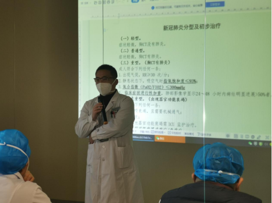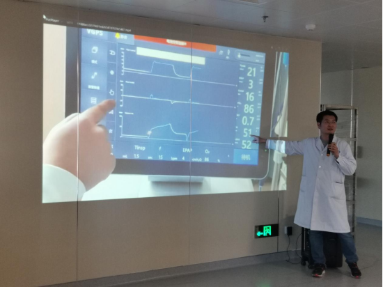 急诊科肖阳春主任进行危重症患者诊疗、无创呼吸机操作流程和实操培训。全院各科室骨干共计100余人到场学习,会后分别在科内进行二次培训,保证急诊急救知识的全面覆盖,以及危重患者救治能力的全面提升。