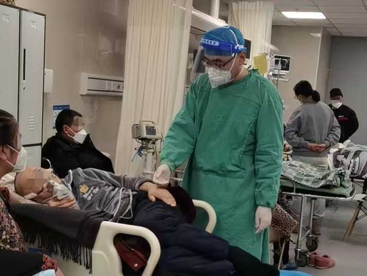 肖加斌同志,是抢救室的主治医师,自12月份以来,重症患者陆续涌入急诊抢救室,原本只有10张床位,加床到了25张,每天的高负荷运转让他疲惫不堪。17日他出现高热,继而出现头疼,全身疼痛,为了不影响工作,病情还未稳定又带病上班,一边是持续咳嗽发热,一边还要给患者进行治疗。他是急诊科的一名骨干党员,时刻牢记着共产党员的初心与使命。12月27日下午,120送来了一位猝死的患者,即将下班的他义无反顾的又加入了抢救工作,这样的情况每天都在发生。作为一名医务工作者,他始终坚守着救死扶伤的使命,不能按时下班是常有的事,只能把孩子一个人放在家里,只能每天怀着歉意回家,希望孩子能理解他的爸爸。