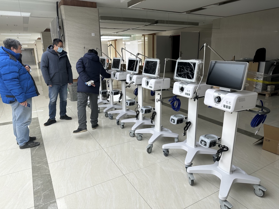 面对呼吸机、监护仪、血氧检测仪等医疗设备紧缺的突发状况,医工处工程师逐个电话咨询,四处寻求所需医疗设备,他们秉承着每一台呼吸机挽救一条性命的信念,彻夜工作,完成所有新到医疗设备的安装调试工作,他们中有党员、也有双带人员中的团员、群众,他们时刻以党员的标准要求自己,奉献冲锋在前,充分发挥党员的先锋模范带头作用。在这场没有硝烟的战争中,医护人员与病毒正面抗争的时候,作为他们背后的“守护者”,医工处工程师在平凡的岗位上,用快速反应与实际行动,默默完成工作使命。
