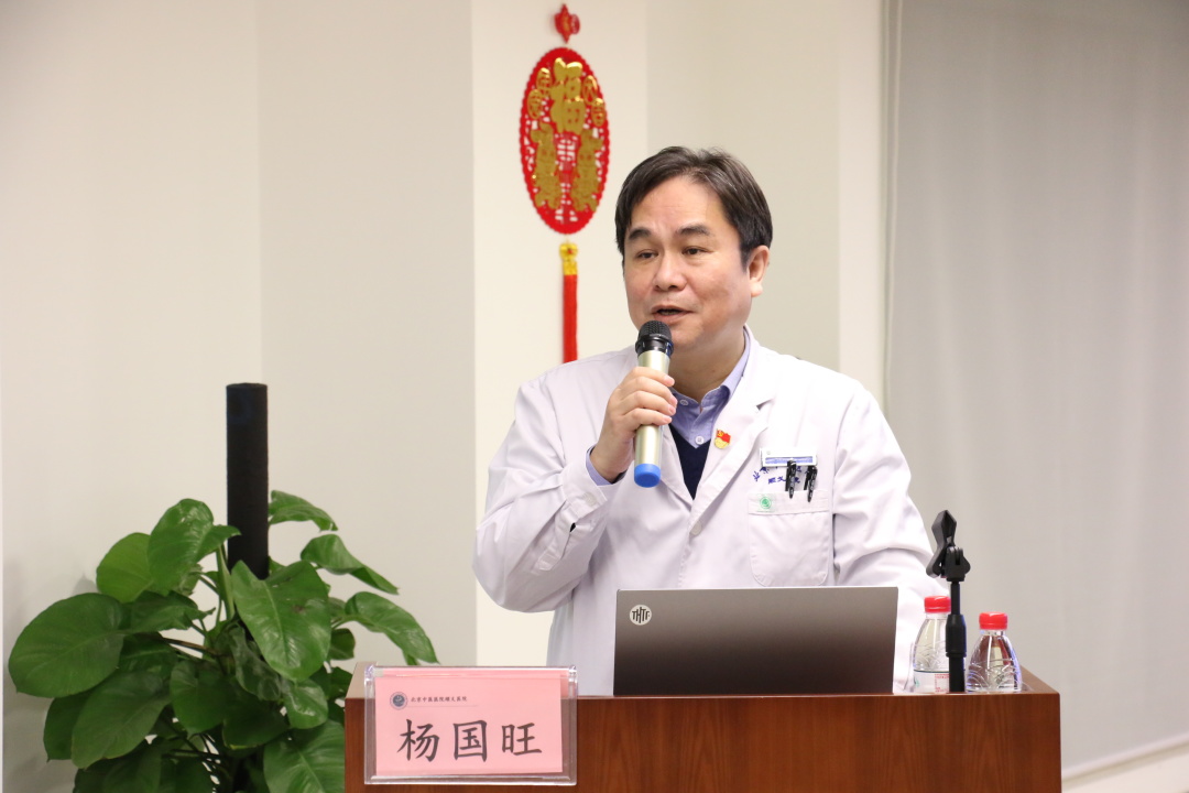 会议的最后由杨国旺执行院长作题为《凝心聚力谋发展 厚积薄发迈新程》的主旨报告。杨院长在报告中回顾了2022年医院工作取得的成绩、工作经验与不足,特别是在年末,面临北京市疫情防控的新形势,全院上下统一思想、凝心聚力、不畏艰辛、勇毅坚守,全力保障急危重症患者救治。医院综合救治能力得到充分锻炼与提升,在疫情处置中的优异表现获得上级领导和社会各界高度评价,他代表院领导班子向全院职工的辛勤付出、担当奉献表示感谢。在部署2023年工作时,杨院长将《道德经》的核心观念与医院发展思路相结合,要求全院干部职工面对新机遇、新挑战,要立足新平台、新起点,践行新理念、展现新作为,共同谋划高质量发展之“道、法、术”。高质量发展之“道”即肩负中医立根、中西融合、服务人民美好生活的使命,遵循仁、术、勤、和的价值观,最终实现医院愿景。高质量发展之“法”即构建新体系、引领新趋势、提升新效能、激活新动力、建设新文化、坚持和加强党对公立医院的全面领导。高质量发展之“术”即实施八项攻坚行动,一是医疗服务能力提升行动、二是患者体验改善行动、三是专学科建设培优行动、四是人才队伍活力跃升行动、五是运营管理提质增效行动、六是智慧医院升级优化行动、七是集团化发展和医联体建设提升行动、八是人文医院建设和品牌塑造行动。