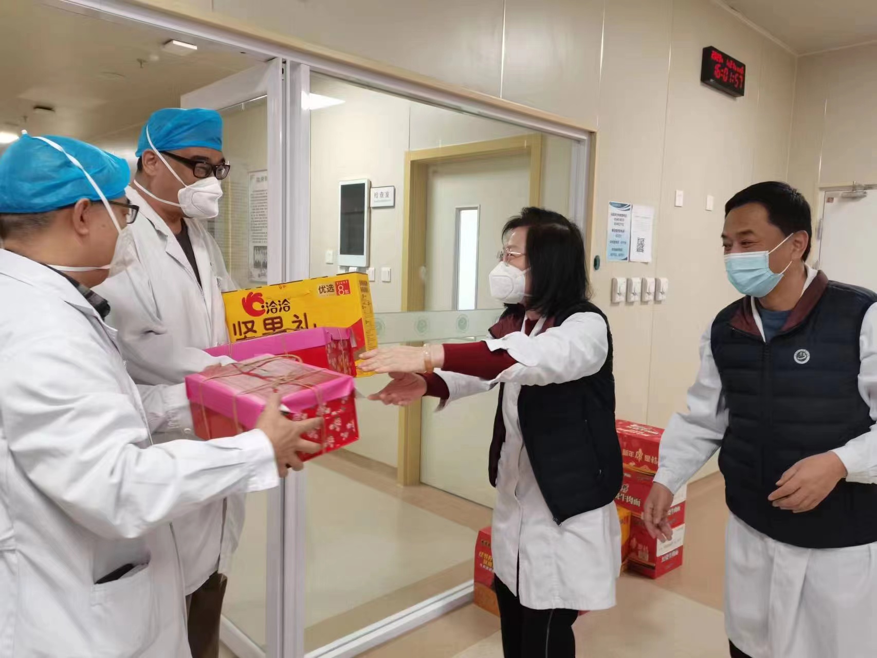 四是在除夕当天与医院党政领导一同走访慰问节日期间坚守岗位的干部职工,院领导带领相关副职、主管科处室,分四组前往医院门诊、住院、后勤及北院区,为在岗职工送去新春佳节的祝福,感谢大家疫情以来,舍小家为大家,履职尽责地展现了白衣天使的奉献精神,感谢大家在举家团聚的时候,仍坚守工作岗位,为保患者平安所做出的辛勤付出。