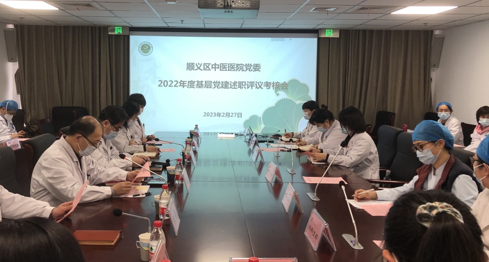 为深入学习贯彻党的二十大精神、市第十三次党代会精神,聚焦履行党建第一责任人职责,压紧压实管党治党主体责任,按照区委组织部及区委卫健工委工作部署,2月27日下午,顺义区中医医院党委召开2022年度基层党建工作述职评议考核会。医院班子成员、院属7个党支部书记、支部委员、“两代表一委员”参加此次会议,会议由魏青同志主持,区委卫生健康工委督导组到会指导。