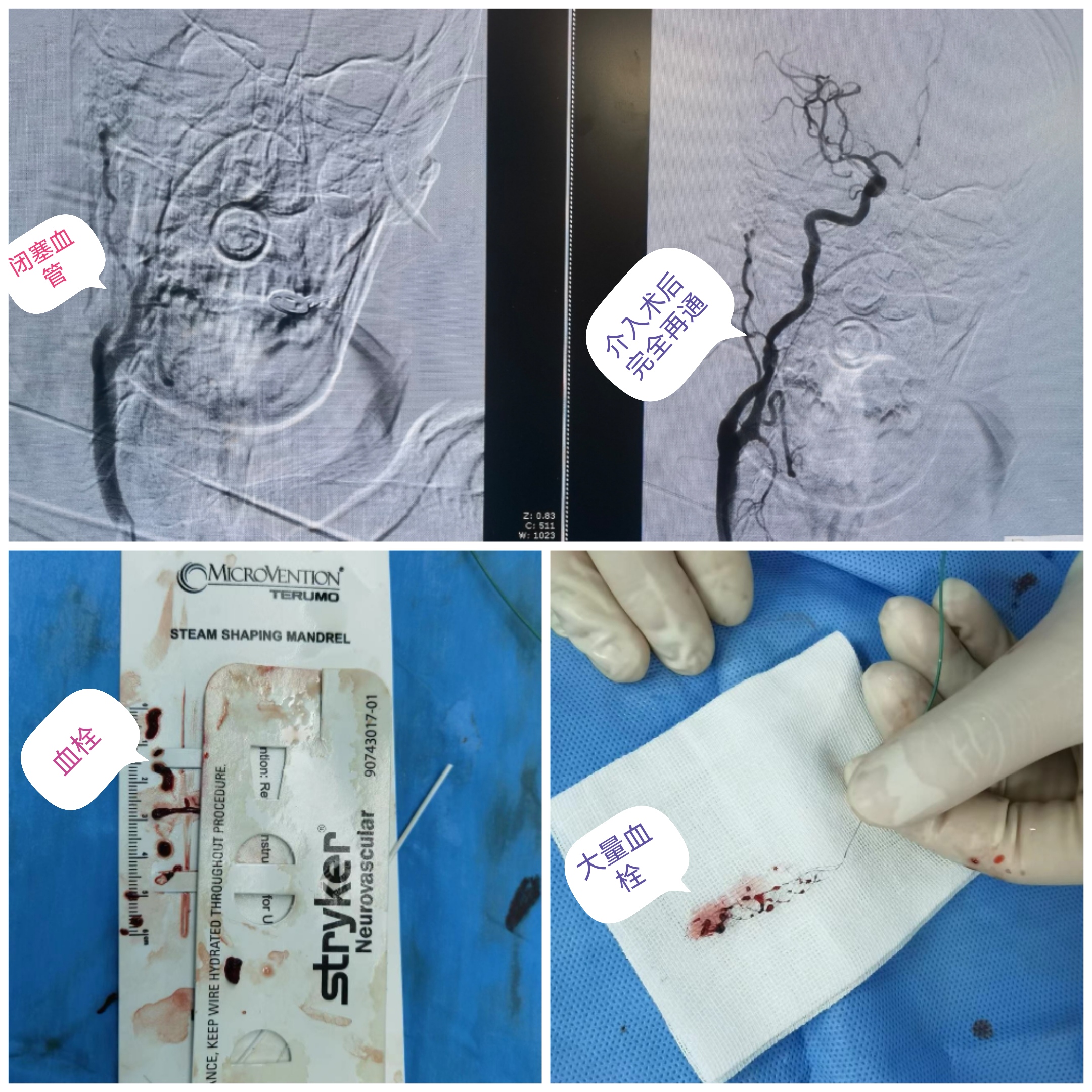 在脑病科团队与多科室通力协作下,手术顺利完成,取出大量血栓,患者术后神志清楚,术后右侧颈内动脉3级再通。术后查体:左侧上肢2级,左侧下肢3级肌力,完善急诊头部CT,未见出血。此例脑血管机械取栓手术的成功,标志着我院脑病科在介入治疗上取得新的突破。