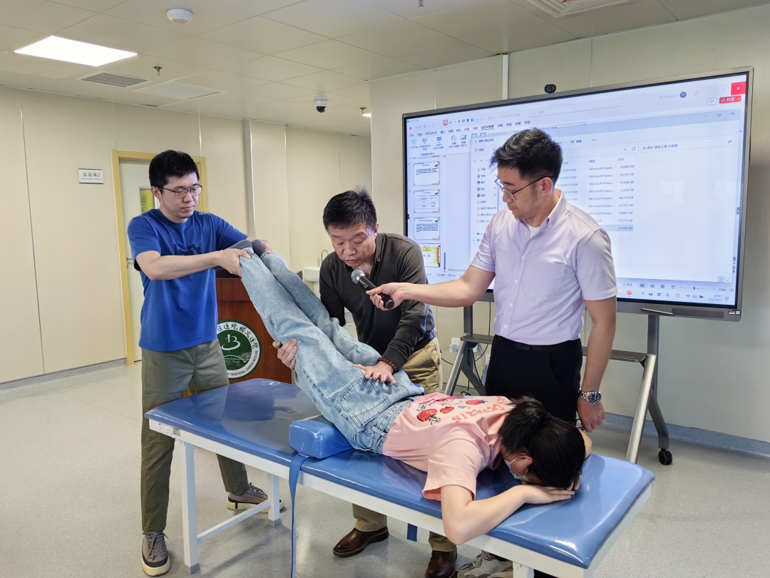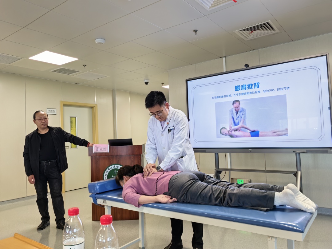 我院石雷副主任医师演示“三搬法”,王尚全主任医师现场点评指导。