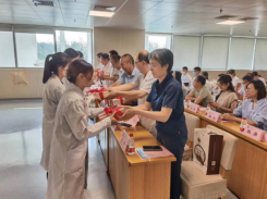 随后,全体实习生肃立,高举右手,庄严地宣读《医学生誓言》,郑重的许下了自己对医学事业的诺言。宣誓后与会领导为学生们赠书,书籍是由医院名医名师编写的《名老中医经验集》,作为迎新礼物赠予学生,这既是医院对学生们寄予的期望,也是国家级名老中医对新时代医学生传承的寄托。