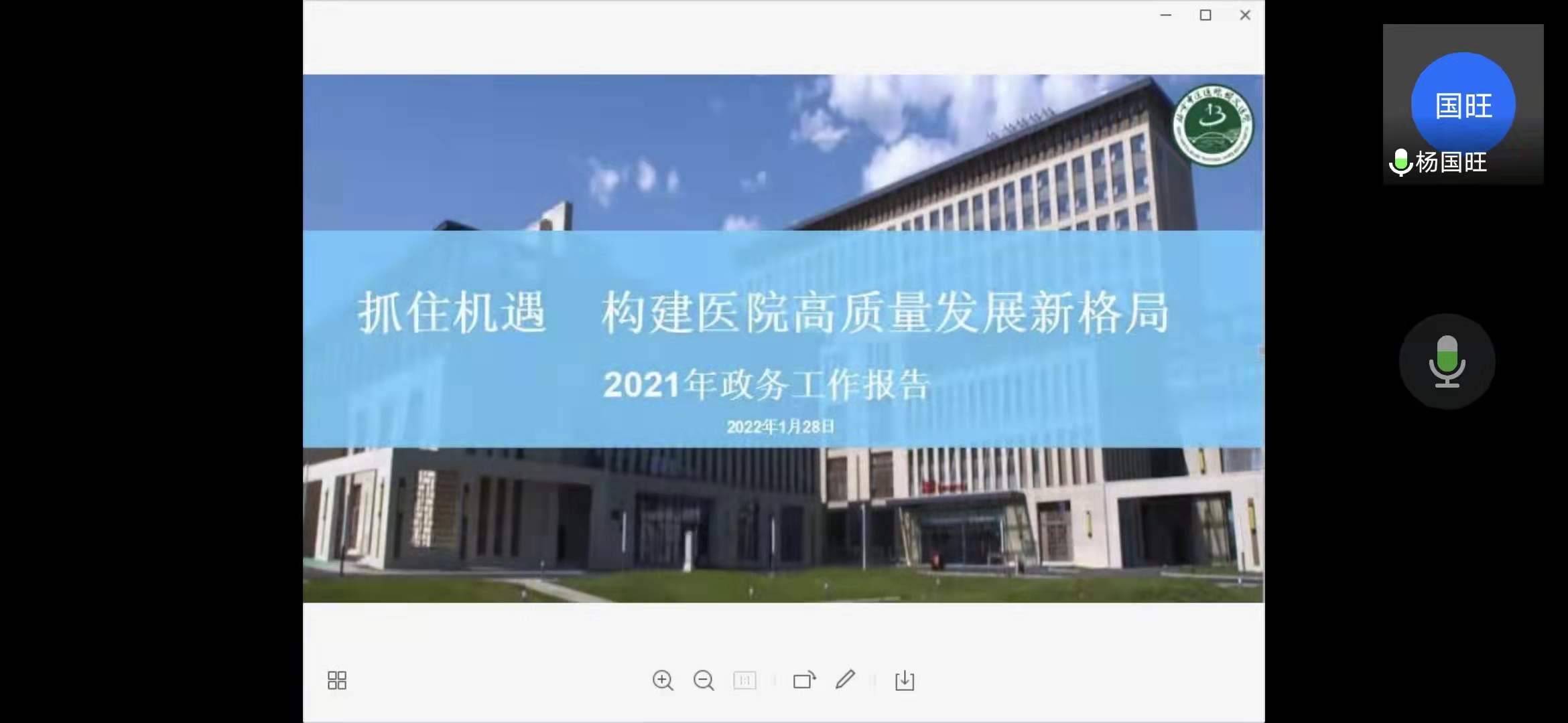 下午2:00,会议准时开始。来自医疗、护理、医技、行政后勤各岗位共计75名职工代表线上参会,代表职工行使民主权利。会议由工会副主席张涵主持。