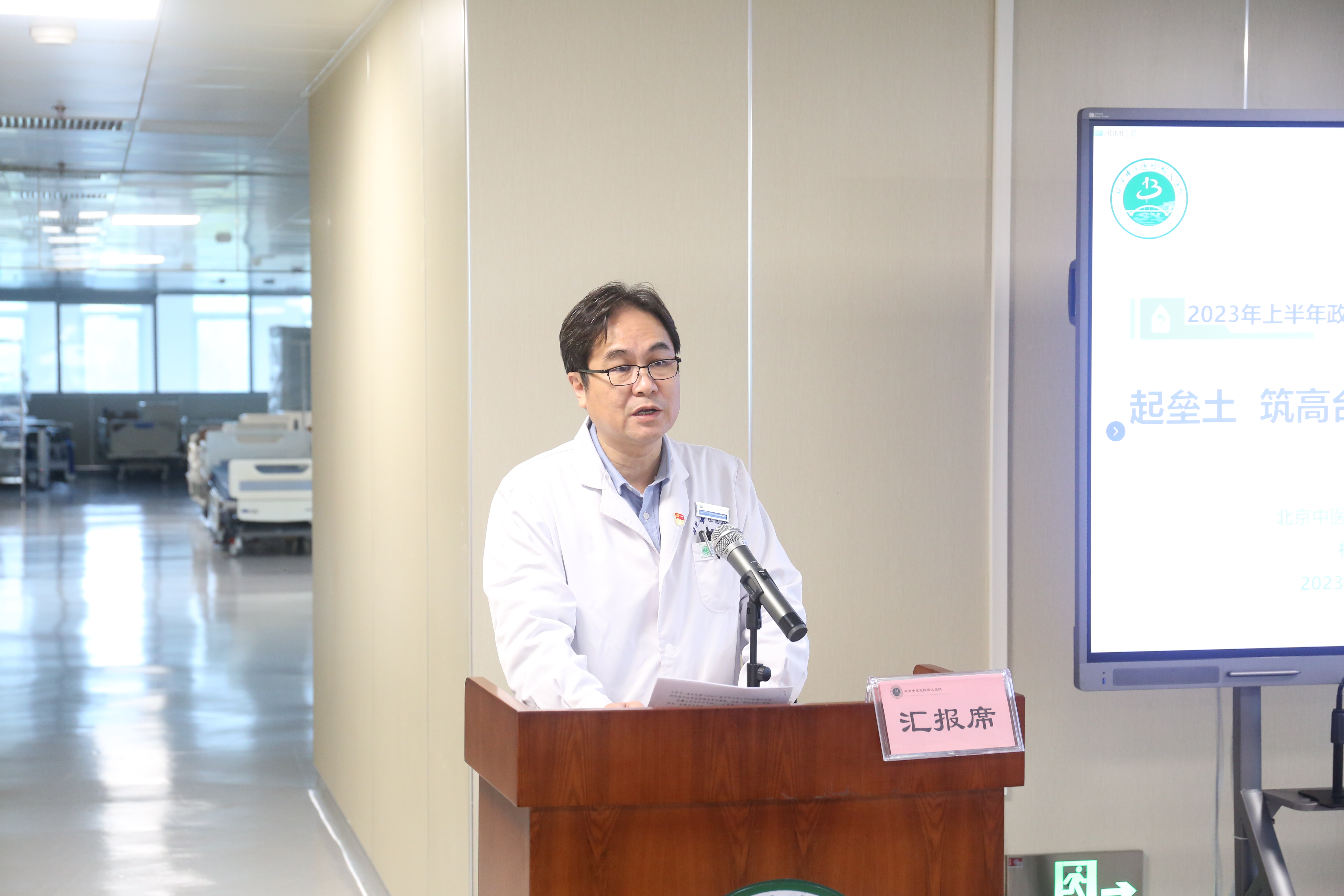 首先杨国旺执行院长做了题目为《起垒土 筑高台 担道义 征新程》的2023年上半年政务工作报告。报告从“强化党建引领,统筹谋划医院发展”、“聚焦主责主业,不断提升医疗服务能力”、“纾解堵点难点,着力改善患者就诊体验”、“创新管理机制,医教研协同提升专学科核心竞争力”、“外引内培并举,全力打造人才聚集新高地”、“提质增效降本,扎实推进运营管理水平跃升”、“信息提档升级,赋能医院高质量发展”、“彰显社会公益,持续提高基层中医药服务水平”、“坚持以人为本,精心塑造人文医院建设品牌”、“夯实运维基础,稳步构建平安医院长效机制”,共计十方面对医院上半年工作进行了全面回顾与总结,并对医院下半年重点工作进行了十项部署安排。