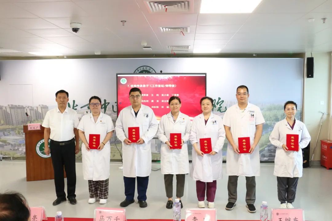 辛大永主任医师、张洪海副主任医师分别代表优秀教研室、优秀名医传承工作室对教学、传承工作进行了经验分享,并表示在今后工作中以德立身,砥砺前行,继续投身于教育教学、中医传承事业,不断提升教学质量,产出更多教学成果。