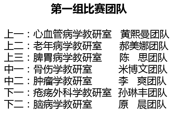 经各教研室初赛,推选出14支团队参加决赛。通过20分钟的查房演示,选手将模拟教学查房的方式,融合了案例分析、思维导图、操作演示等教学方法,贯穿了思政教育和医学人文的情怀,展示了病史采集、体格检查、辅助检查、诊断和治疗等教学基本功,充分体现出我院临床教师的专业素养和教学风采。