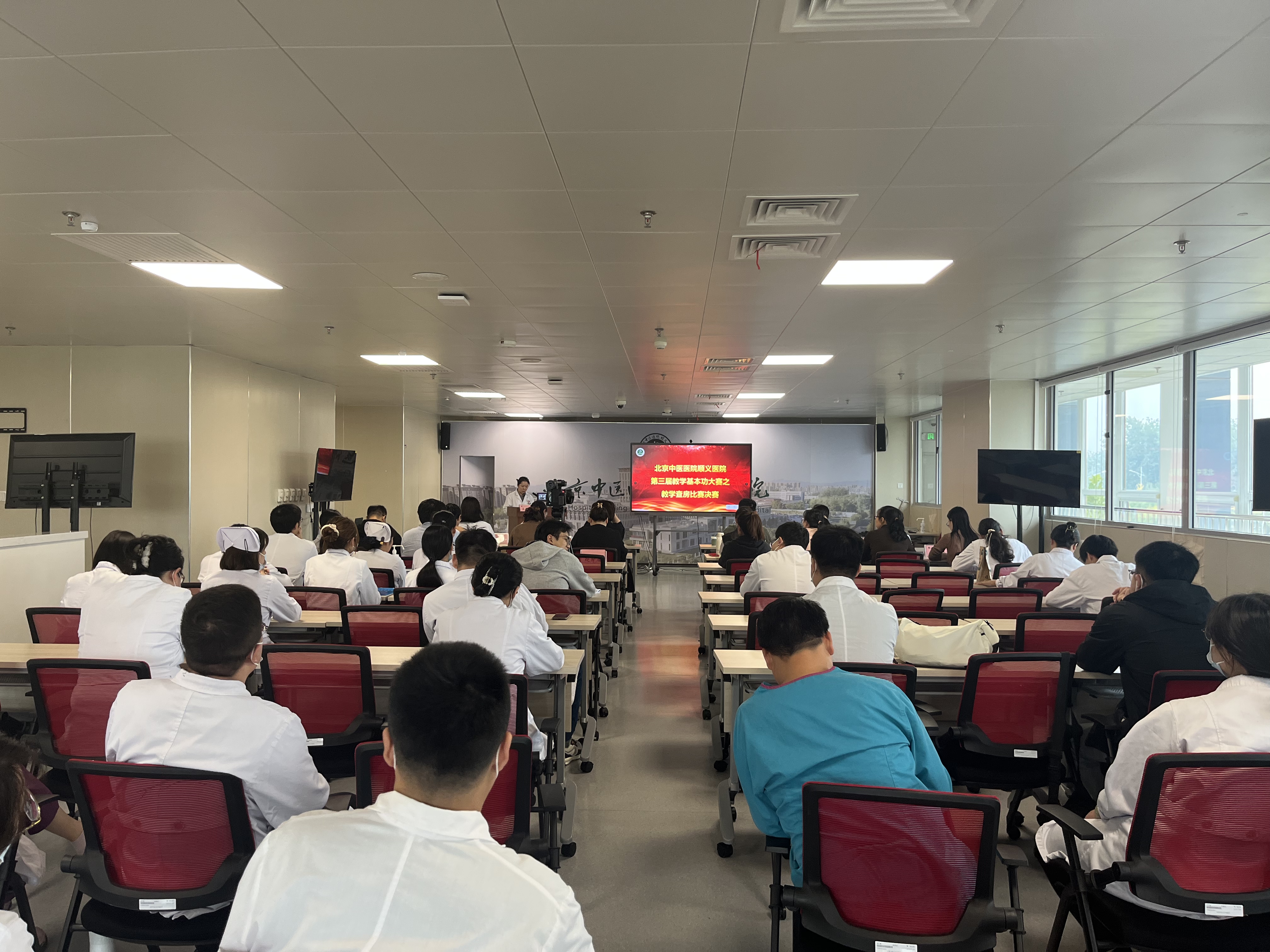 为进一步提升临床教师教学能力,加强教研室师资建设,教育处联合工会于10月9日在急诊三层会议室举办第三届教学基本功大赛之教学查房决赛。评委由河北北方学院王莹副院长、首都医科大学附属北京中医医院教育处王鹏处长、北京中医医院顺义医院邱新萍副院长、工会张涵副主席、医务处杭颖处长、教育处杨洋处长担任。同时到场观摩学习的还有张家口市中医院、衡水市中医医院、北京丰台中医西医结合医院各兄弟单位的领导、嘉宾及我院教学骨干,共计70余人参加。