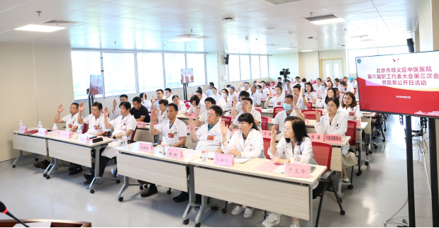 8月25日,顺义区中医医院召开第六届职工代表大会第三次会议暨院务公开日活动,来自医疗、护理、医技、行政后勤等各个岗位的70余名职工代表参会。