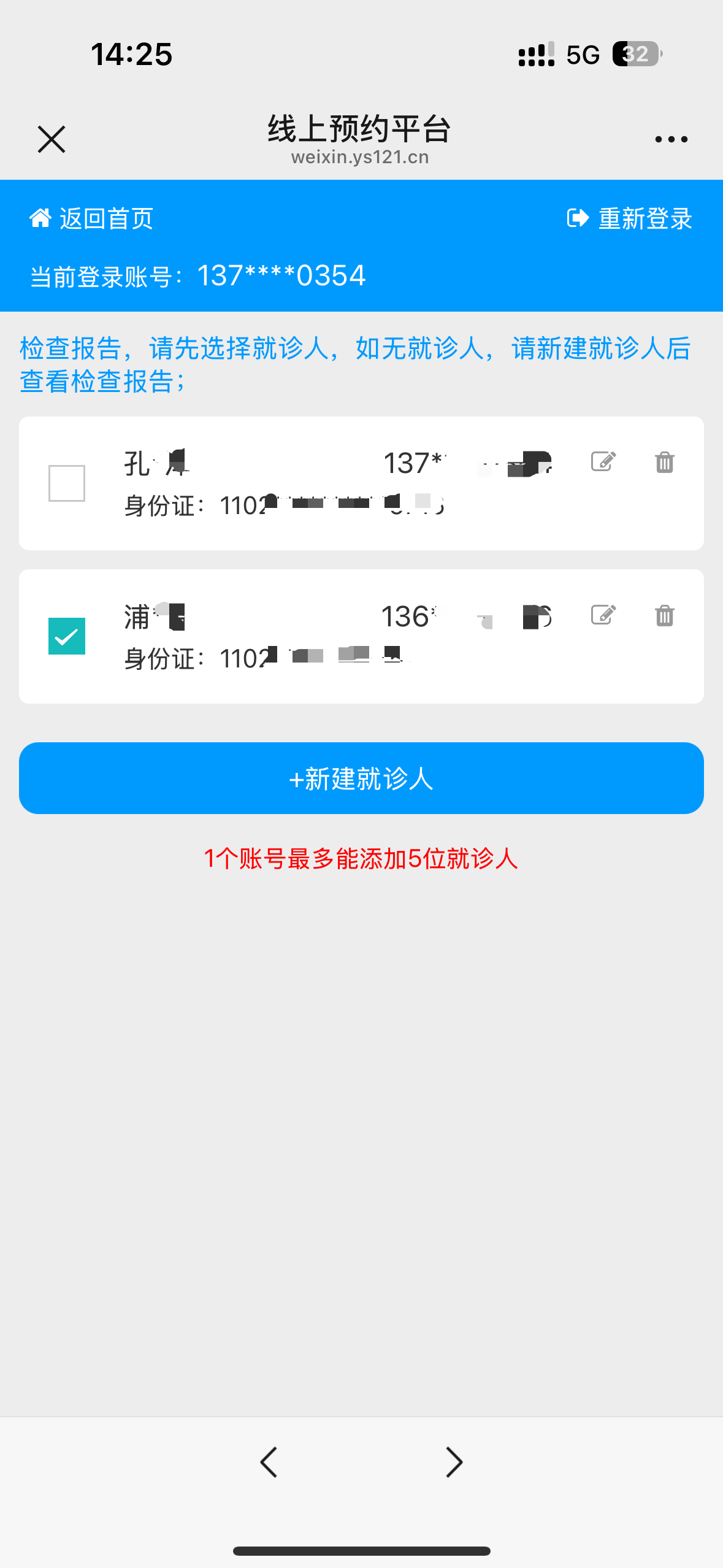 选择对应的就诊人信息(如有就诊人可进行新建,按照系统要求规则填写信息)