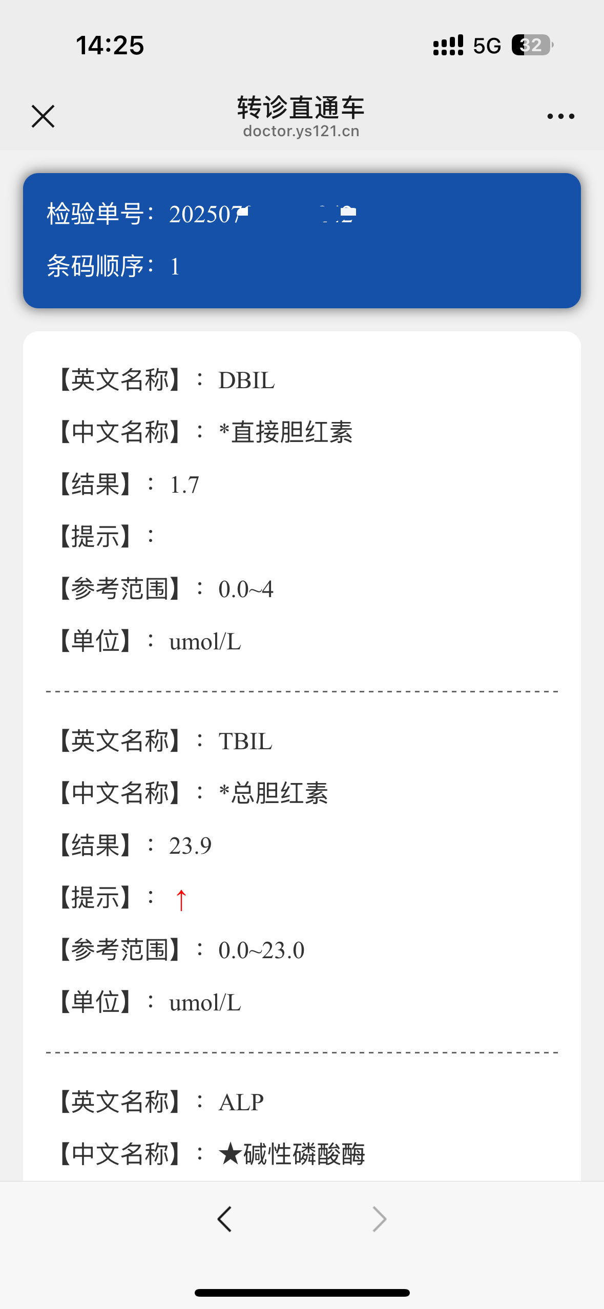 进入检查结果列表页,可查询近一年内的检查结果,点击某一条检查记录,可查看详细数据